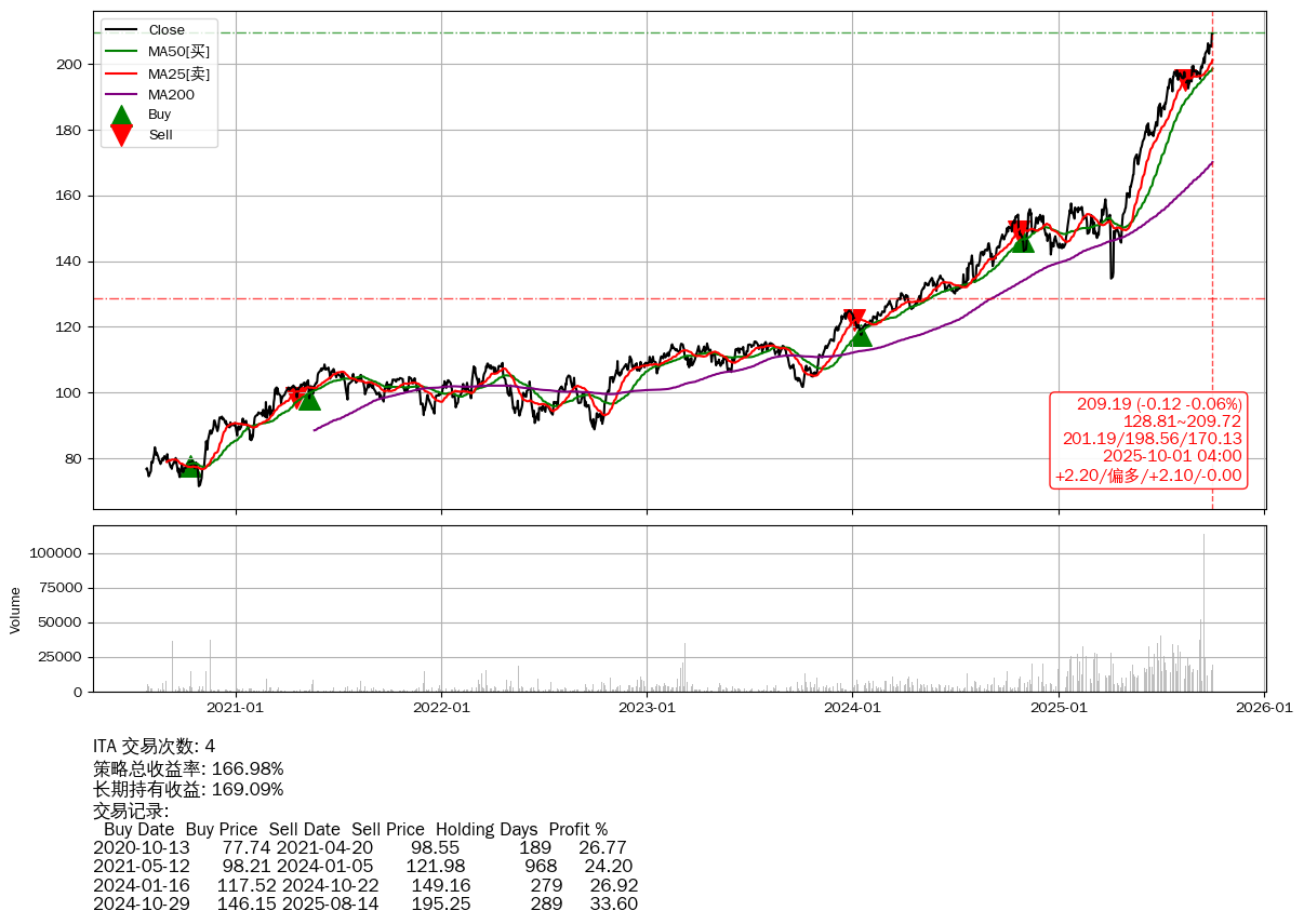 | 29 | ★ITA | +166.98% | +169.09% | -2.11% | 4 | +2.20/偏多/+2.10/-0.00 | 2020-07-27~2025-10-01 |
