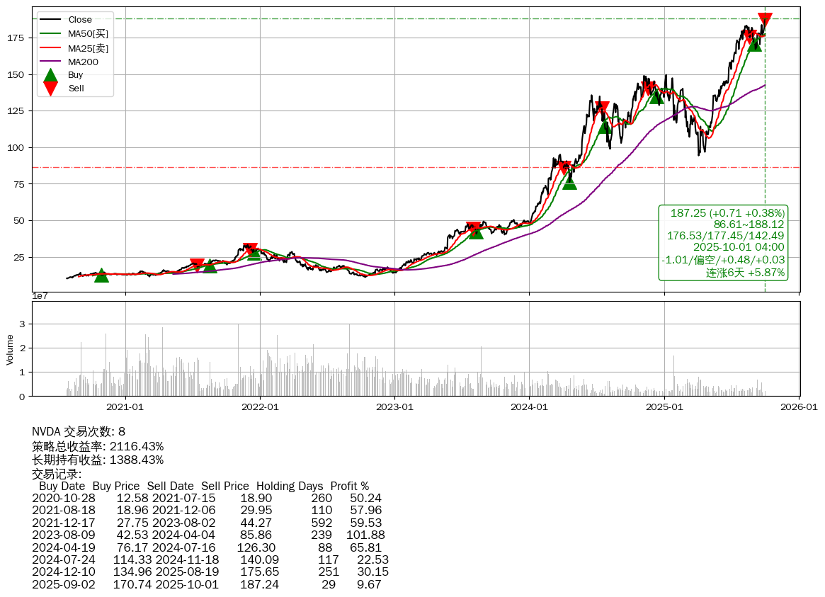 | 1 | ★NVDA | +2116.43% | +1388.43% | +727.99% | 8 | -1.01/偏空/+0.48/+0.03 | 2020-07-27~2025-10-01 |