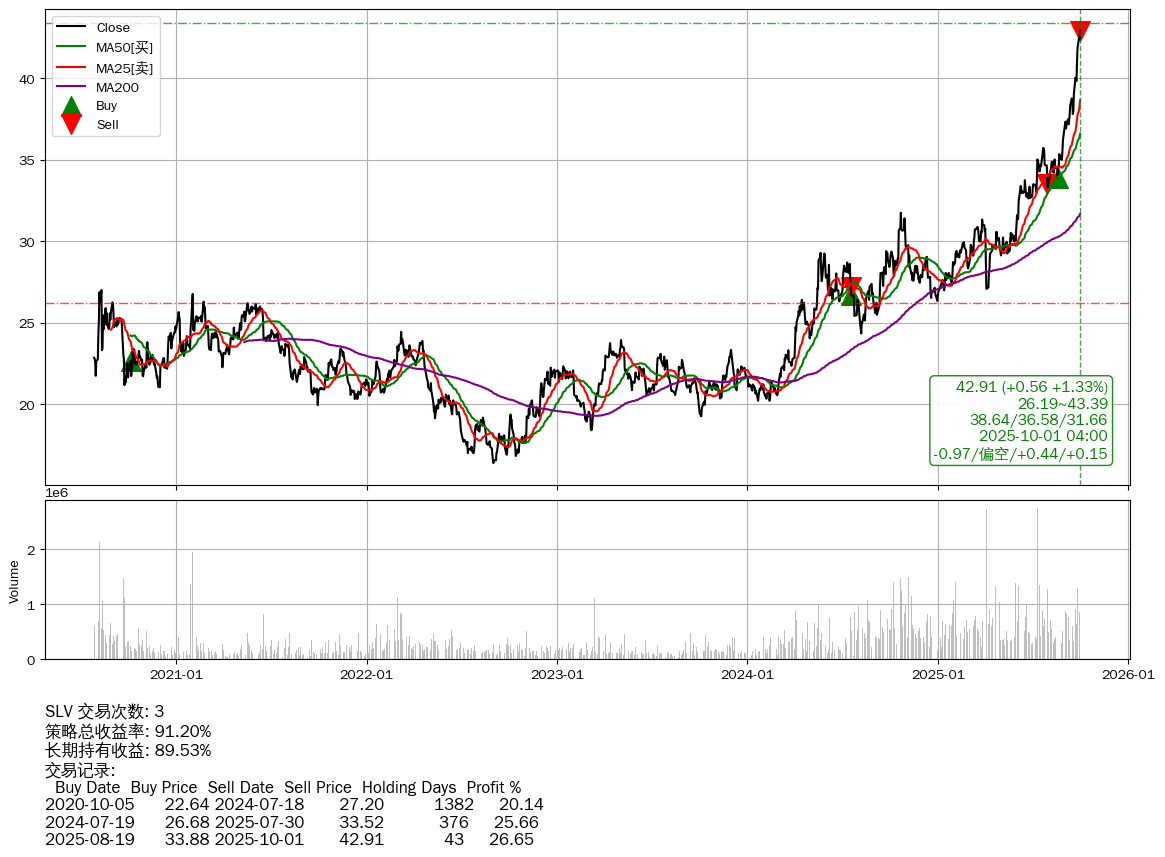 | 52 | ★SLV | +91.20% | +89.53% | +1.67% | 3 | -0.97/偏空/+0.44/+0.15 | 2020-07-27~2025-10-01 |