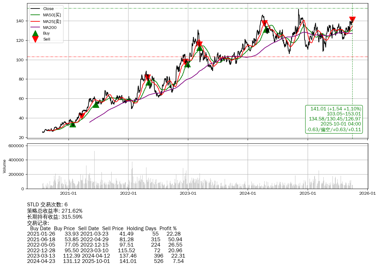 | 15 | ★STLD | +271.62% | +315.59% | -43.97% | 6 | -0.63/偏空/+0.63/+0.11 | 2020-07-27~2025-10-01 |