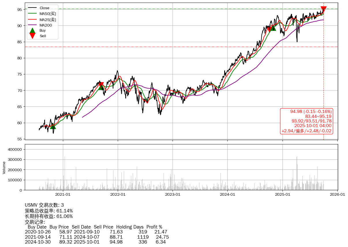 | 65 | ★USMV | +61.14% | +61.06% | +0.08% | 3 | +2.94/偏多/+2.48/-0.02 | 2020-07-27~2025-10-01 |