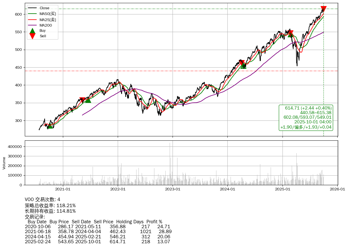 | 40 | ★VOO | +118.21% | +114.81% | +3.40% | 4 | +1.90/偏多/+1.93/+0.04 | 2020-07-27~2025-10-01 |