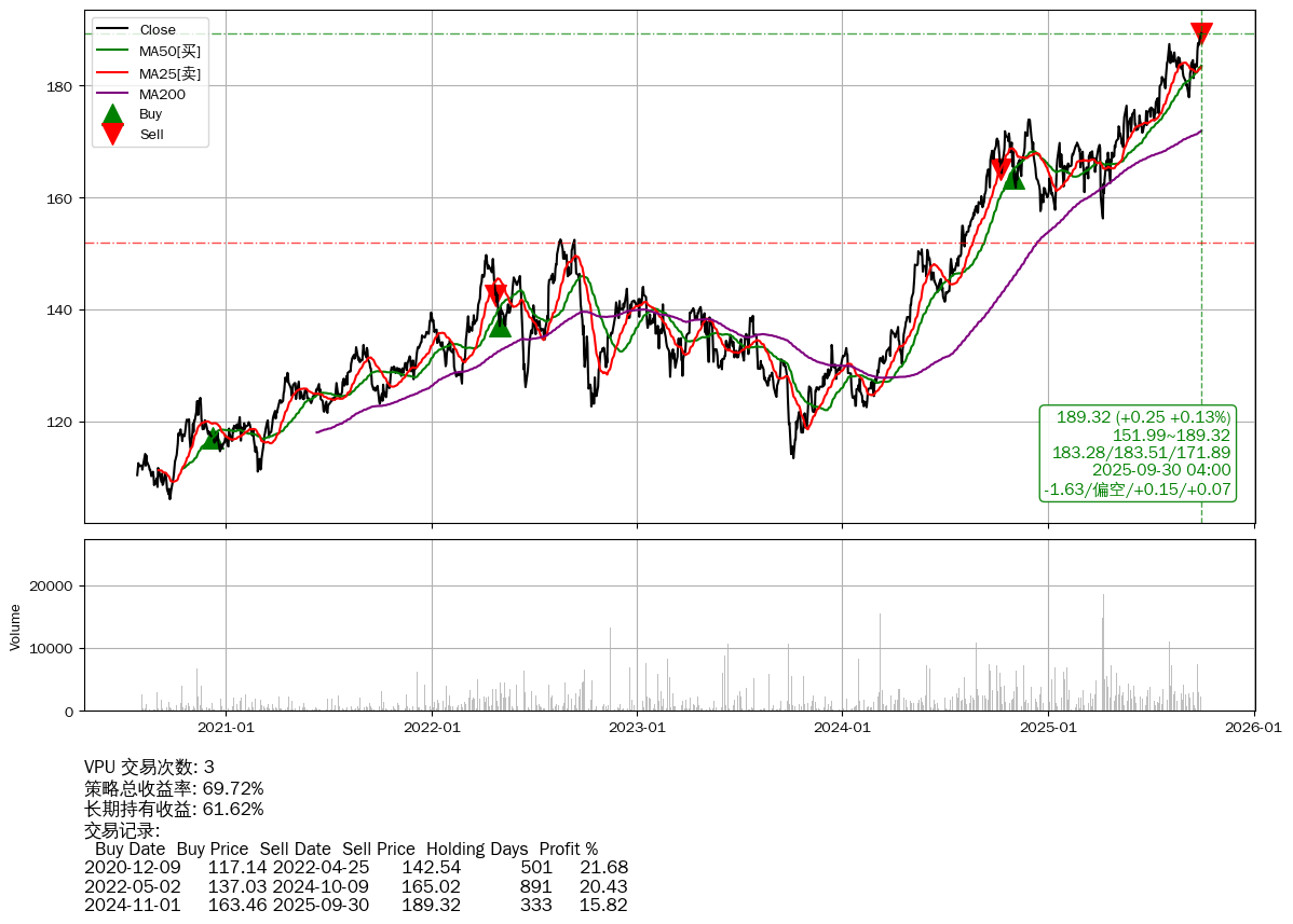 | 61 | ★VPU | +69.72% | +61.62% | +8.10% | 3 | -1.63/偏空/+0.15/+0.07 | 2020-07-27~2025-09-30 |