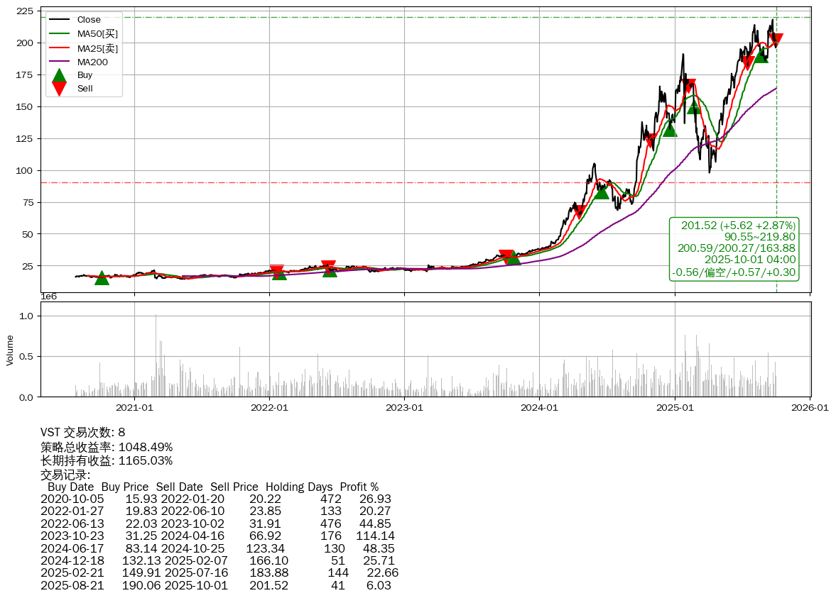 | 3 | ★VST | +1048.49% | +1165.03% | -116.55% | 8 | -0.56/偏空/+0.57/+0.30 | 2020-07-27~2025-10-01 |