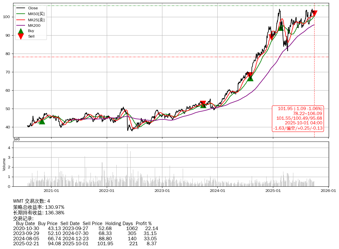 | 34 | ★WMT | +130.97% | +136.38% | -5.41% | 4 | -1.63/偏空/+0.25/-0.13 | 2020-07-27~2025-10-01 |