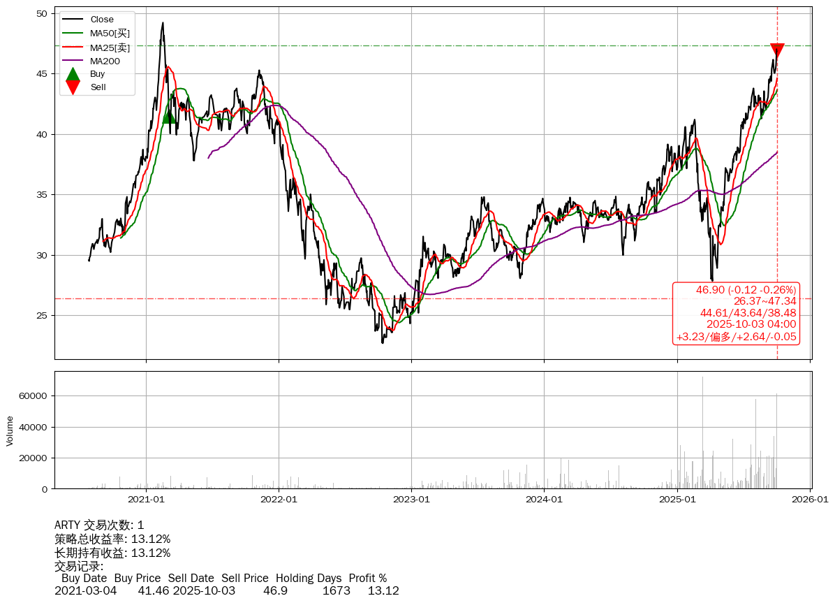 | 71 | ★ARTY | +13.12% | +13.12% | -0.00% | 1 | +3.23/偏多/+2.64/-0.05 | 2020-07-27~2025-10-03 |