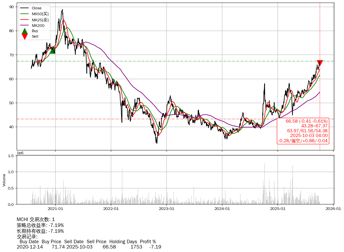 | 72 | ★MCHI | -7.19% | -7.19% | +0.00% | 1 | -0.28/偏空/+0.88/-0.04 | 2020-07-27~2025-10-03 |