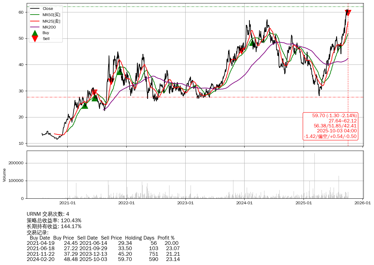 | 33 | ★URNM | +120.43% | +144.17% | -23.74% | 4 | -1.42/偏空/+0.54/-0.50 | 2020-07-28~2025-10-03 |