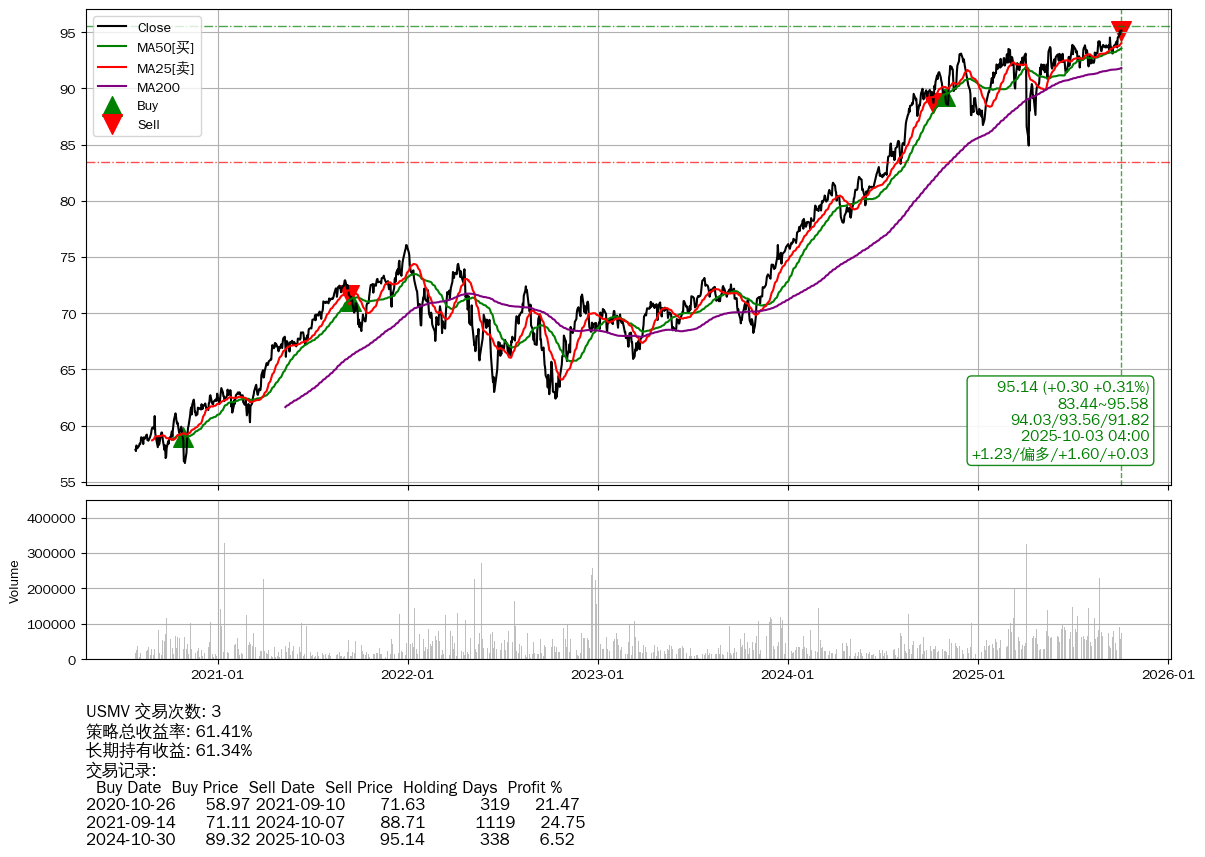 | 60 | ★USMV | +61.41% | +61.34% | +0.08% | 3 | +1.23/偏多/+1.60/+0.03 | 2020-07-27~2025-10-03 |