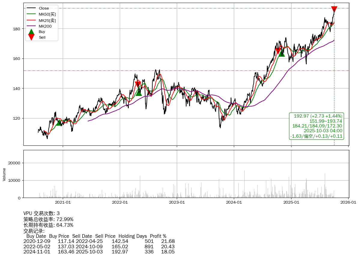 | 56 | ★VPU | +72.99% | +64.73% | +8.26% | 3 | -1.63/偏空/+0.13/+0.11 | 2020-07-27~2025-10-03 |