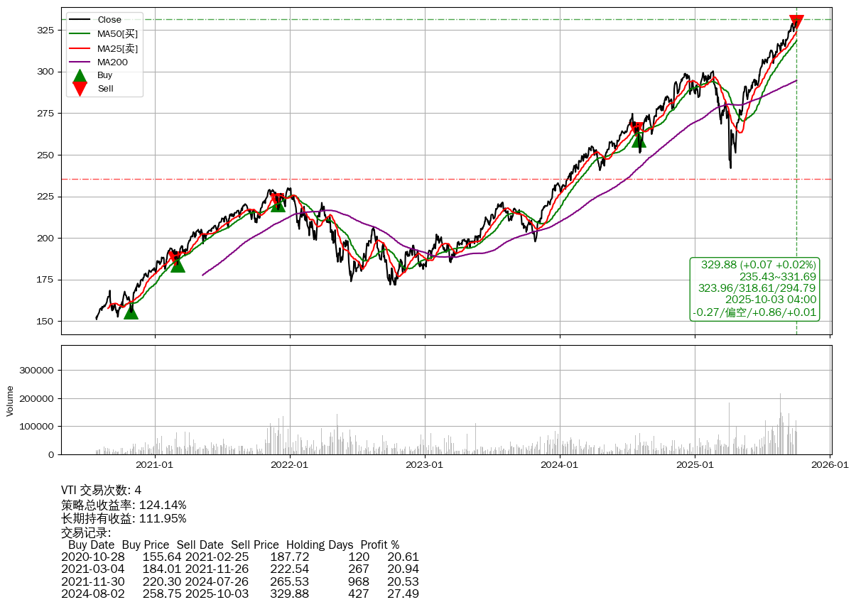 | 30 | ★VTI | +124.14% | +111.95% | +12.19% | 4 | -0.27/偏空/+0.86/+0.01 | 2020-07-27~2025-10-03 |