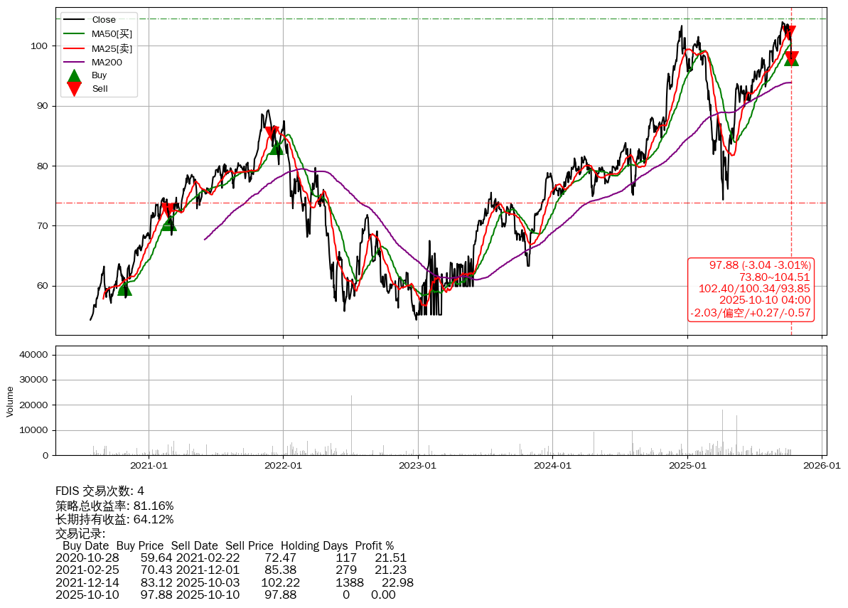 | FDIS | 2025-10-10 | 📉跌破 MA5/50 均线 |