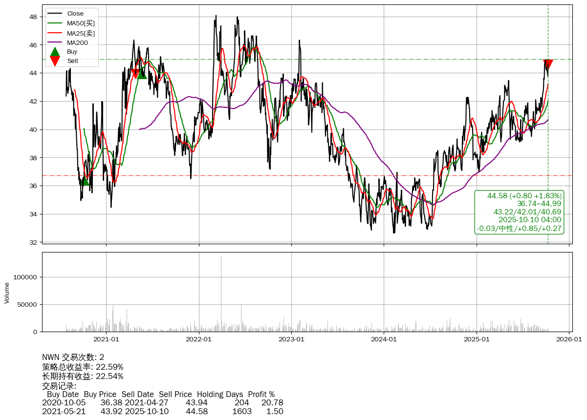 | 82 | ★NWN | +22.59% | +22.54% | +0.05% | 2 | -0.03/中性/+0.85/+0.27 | 2020-07-27~2025-10-10 |