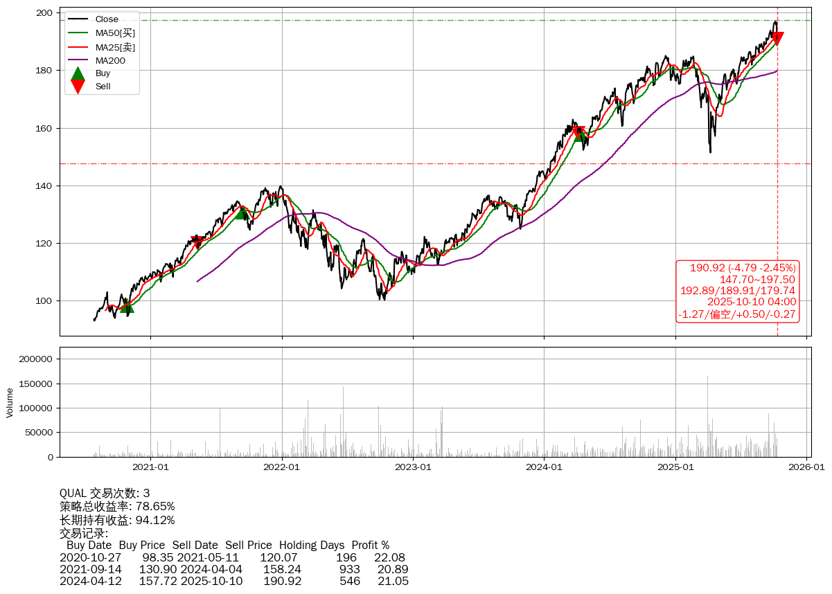 | 64 | ★QUAL | +78.65% | +94.12% | -15.47% | 3 | -1.27/偏空/+0.50/-0.27 | 2020-07-27~2025-10-10 |
