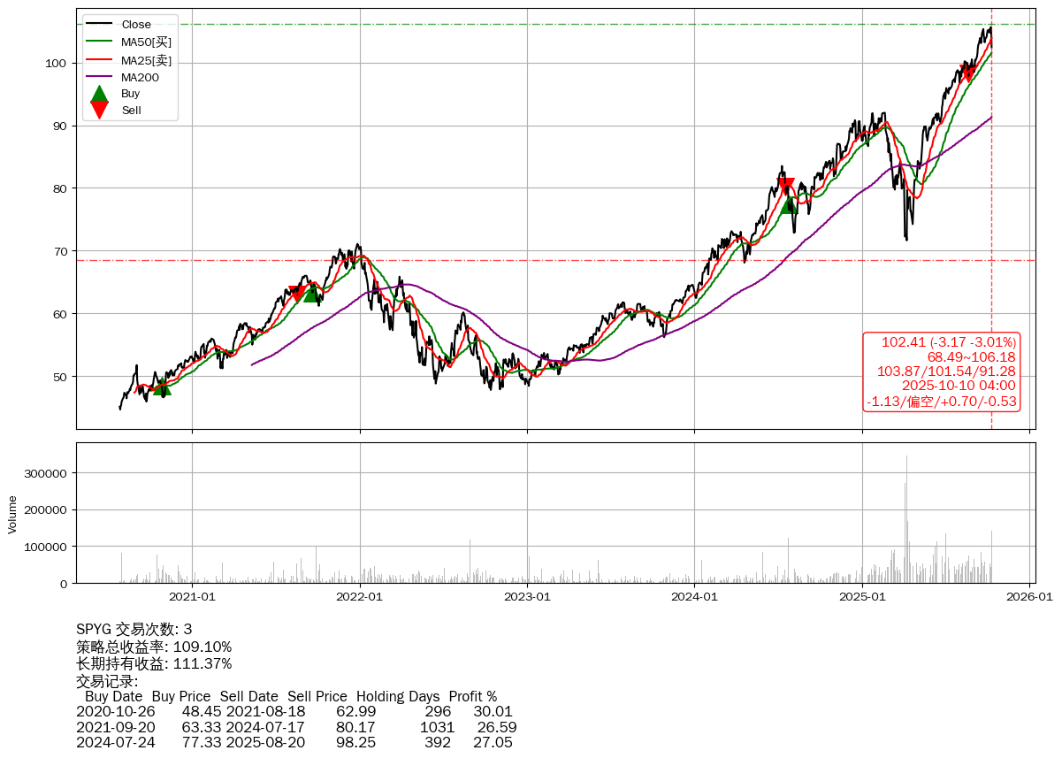 | 46 | ★SPYG | +109.10% | +111.37% | -2.27% | 3 | -1.13/偏空/+0.70/-0.53 | 2020-07-27~2025-10-10 |