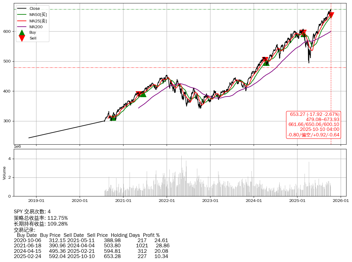 | 41 | ★SPY | +112.75% | +109.28% | +3.47% | 4 | -0.80/偏空/+0.92/-0.64 | 2018-11-01~2025-10-10 |