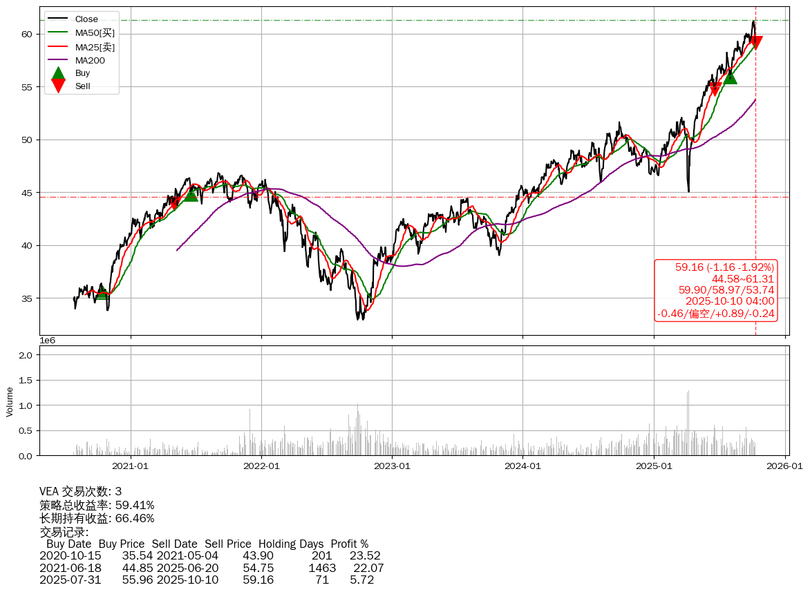 | VEA | 2025-10-10 | 📉跌破 MA25 均线 |