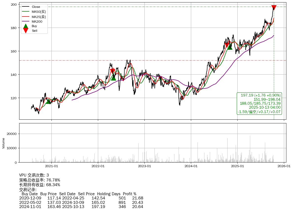 | 67 | ★VPU | $197.21(+1.71 +0.87% 2025-10-13 15:59) | 📈涨破 MA5 均线 | +76.78% | +68.34% | +8.45% | 3 | 偏空/0.17/0.07 | 2020-07-27~2025-10-13 |