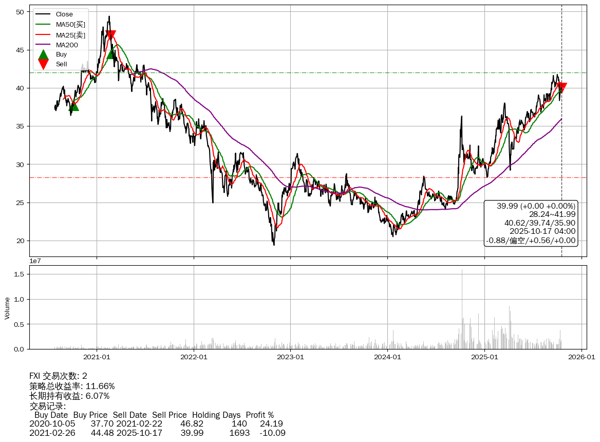 | 54 | ★FXI | $39.98(+0.00 +0.00% 2025-10-17 15:59) | 📉回撤 2021-02-18 -19.02% (1701天) 19.37(2022-10-31) → 49.38(2021-02-17) (-60.77%) | +11.66% | +6.07% | +5.58% | 2 | 偏空/0.56/0.00 | 2020-07-27~2025-10-17 |