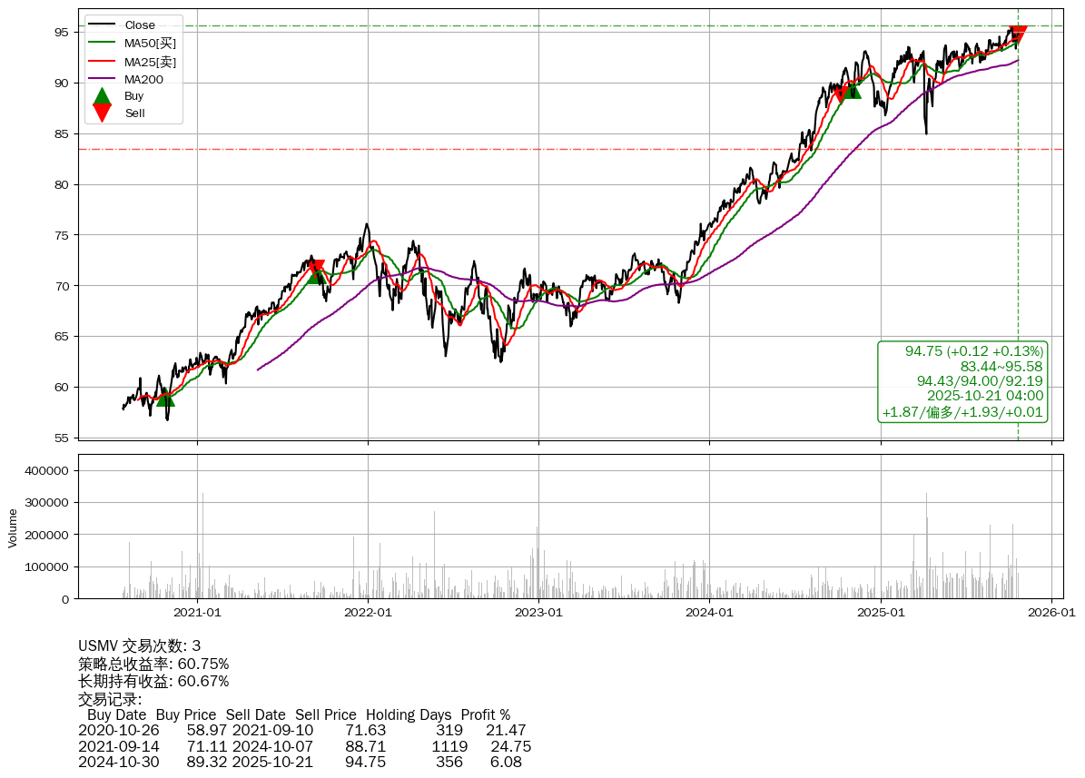 | 39 | ★USMV | $94.74(+0.12 +0.13% 2025-10-21 15:59) | 📉回撤 2025-10-09 -0.67% (12天) 93.33(2025-10-16) → 95.39(2025-10-08) (-2.16%) | +60.75% | +60.67% | +0.07% | 3 | 偏多/1.93/0.01 | 2020-07-27~2025-10-21 |