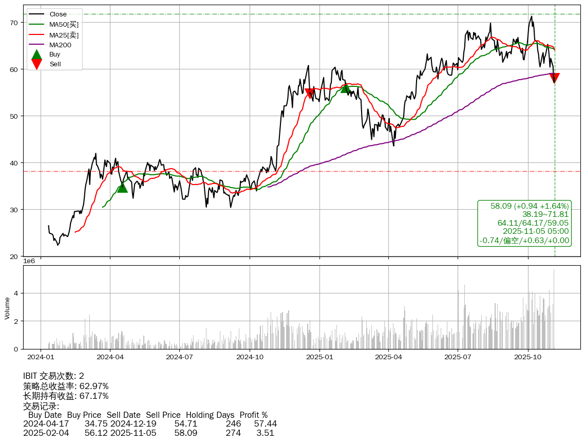 | 34 | ★IBIT | $58.94(+1.78 +3.11% 2025-11-05 14:59) | 📉回撤 2025-10-06 -18.52% (29天) 57.16(2025-11-03) → 71.29(2025-10-05) (-19.83%) | +62.97% | +67.17% | -4.20% | 2 | 偏空/0.63/0.00 | 2024-01-11~2025-11-05 |