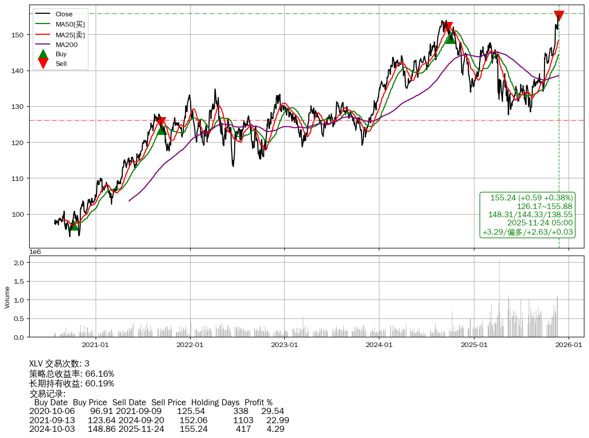 | 35 | ★XLV | $155.24(+0.57 +0.37%) 11-24 14:59 154.67 11-21 | 📈涨破 52周高点 (155.88) | +66.16% | +60.19% | +5.97% | 3 | 偏多/2.63/0.03 | 2020-07-27~2025-11-24 |