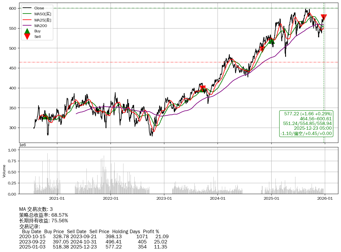 | 30 | ★MA | $576.36(+0.78 +0.14%) 12-23 14:59 575.58 12-22 | 📉回撤 08-24 -3.48% (120天) 598.06(08-21)→527.52(11-17) | +68.57% | +75.56% | -7.00% | 3 | 偏空/0.47/0.00 | 2020-07-27~2025-12-23 |