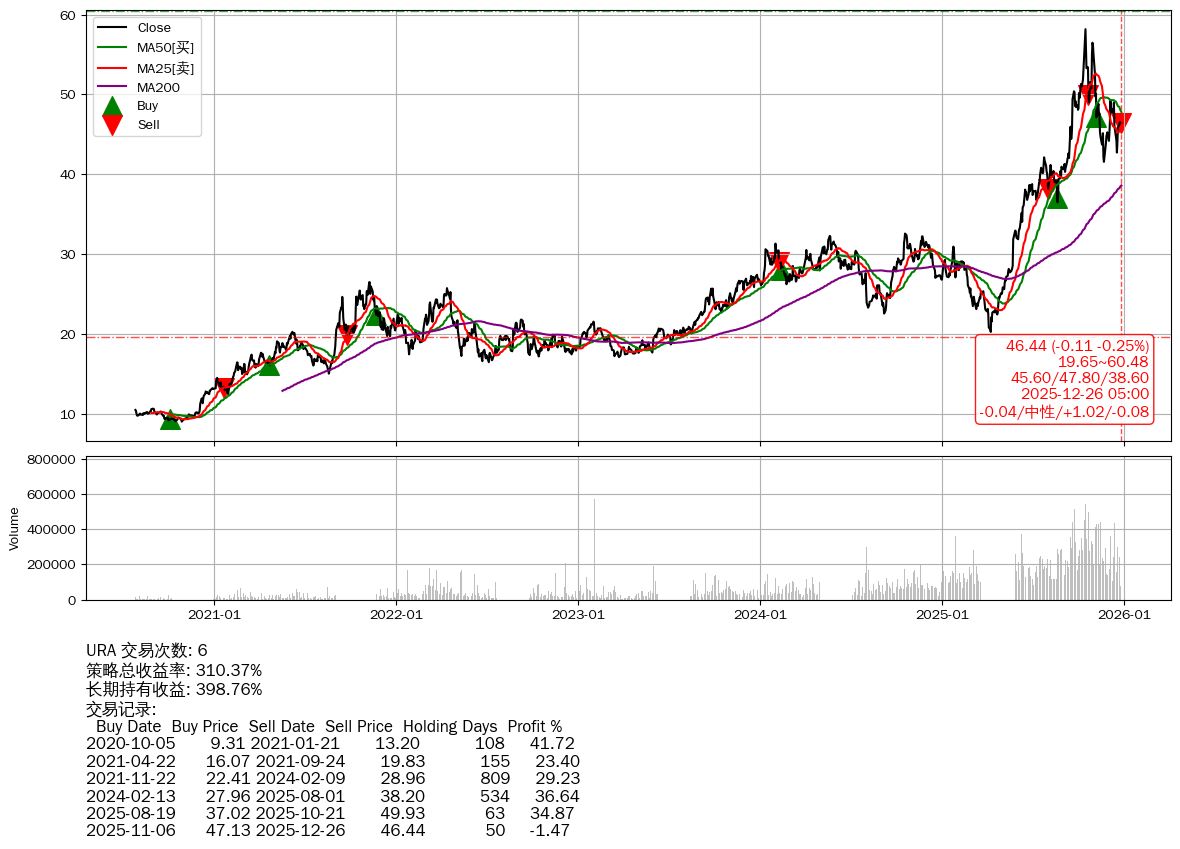 | 8 | ★URA | $45.88(-0.78 -1.67%) 12-26 14:59 46.66 12-24 | 📉回撤 10-15 -20.17% (71天) 58.17(10-14)→41.56(11-20) | +310.37% | +398.76% | -88.40% | 6 | 中性/1.02/-0.08 | 2020-07-27~2025-12-26 |