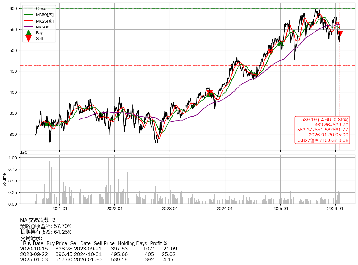| 33 | ★MA | $538.73(-4.73 -0.87%) 01-30 14:59 543.46 01-29 | 📉回撤 2025-08-24 -9.71% (158天) 597.16(2025-08-21)→520.31(01-26) | +57.70% | +64.25% | -6.55% | 3 | 偏空/0.63/-0.08 | 2020-07-27~2026-01-30 |